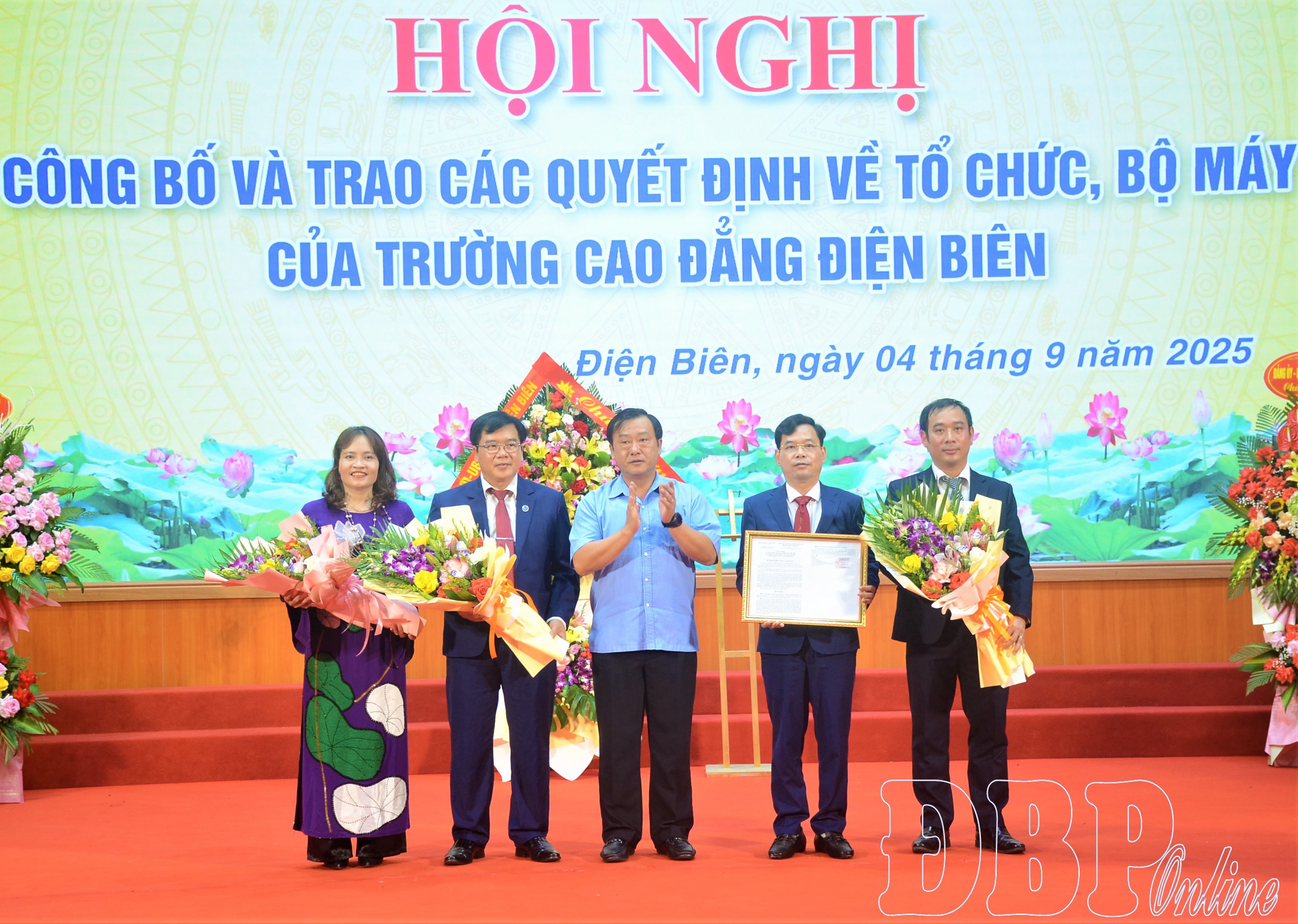 Chiều ngày 4/9, UBND tỉnh tổ chức công bố và trao các quyết định về tổ chức, bộ máy của Trường Cao đẳng Điện Biên. Đồng chí Vừ A Bằng, Phó Chủ tịch UBND tỉnh trao quyết định, tặng hoa chúc mừng và giao nhiệm vụ cho nhà trường.